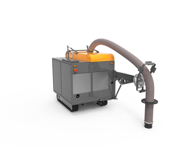 The ESE 1 has a telescopic suction hose carrier with a maximum reach of 2.44 m which can rotate through a radius of 120°. The suction hose is 200 mm in diameter and is made of a special abrasion-resistant material.